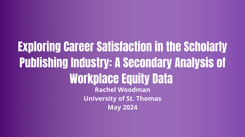 Exploring Career Satisfaction in the Scholarly Publishing Industry: A Secondary Analysis of Workplace Equity Data